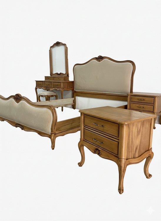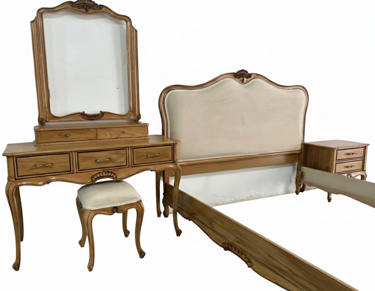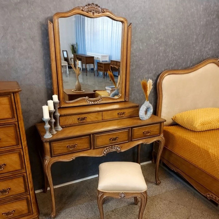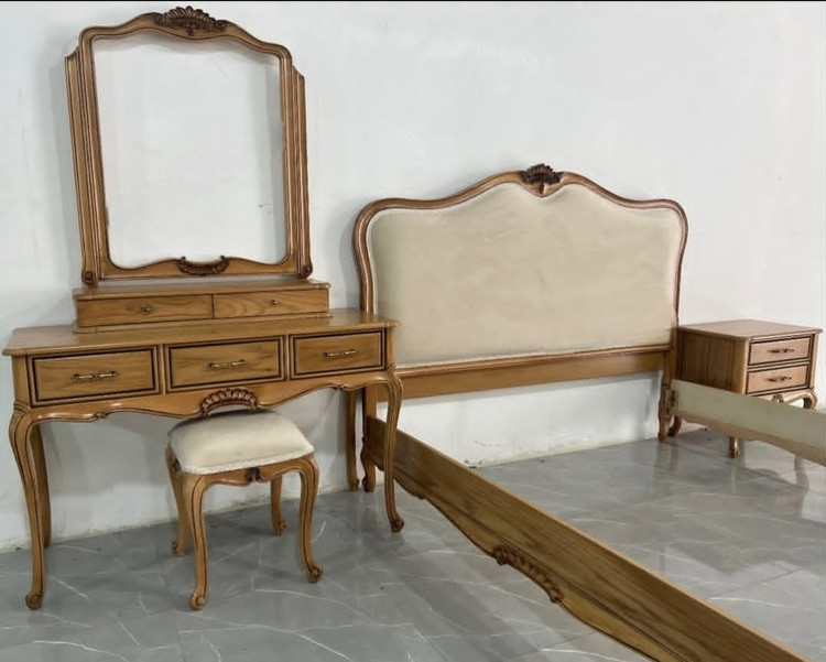 ✅ شامل: تختخواب + ۲ عدد پاتختی + میز آرایش + آینه + صندلی