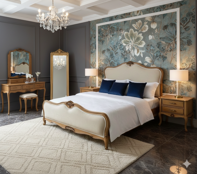 طراحی این مدل با الهام از سبک کلاسیک اروپایی، با خطوط منحنی، منبتهای ظریف و پارچهکوبی شیک، حس گرما و شکوه را همزمان به فضا میدهد.