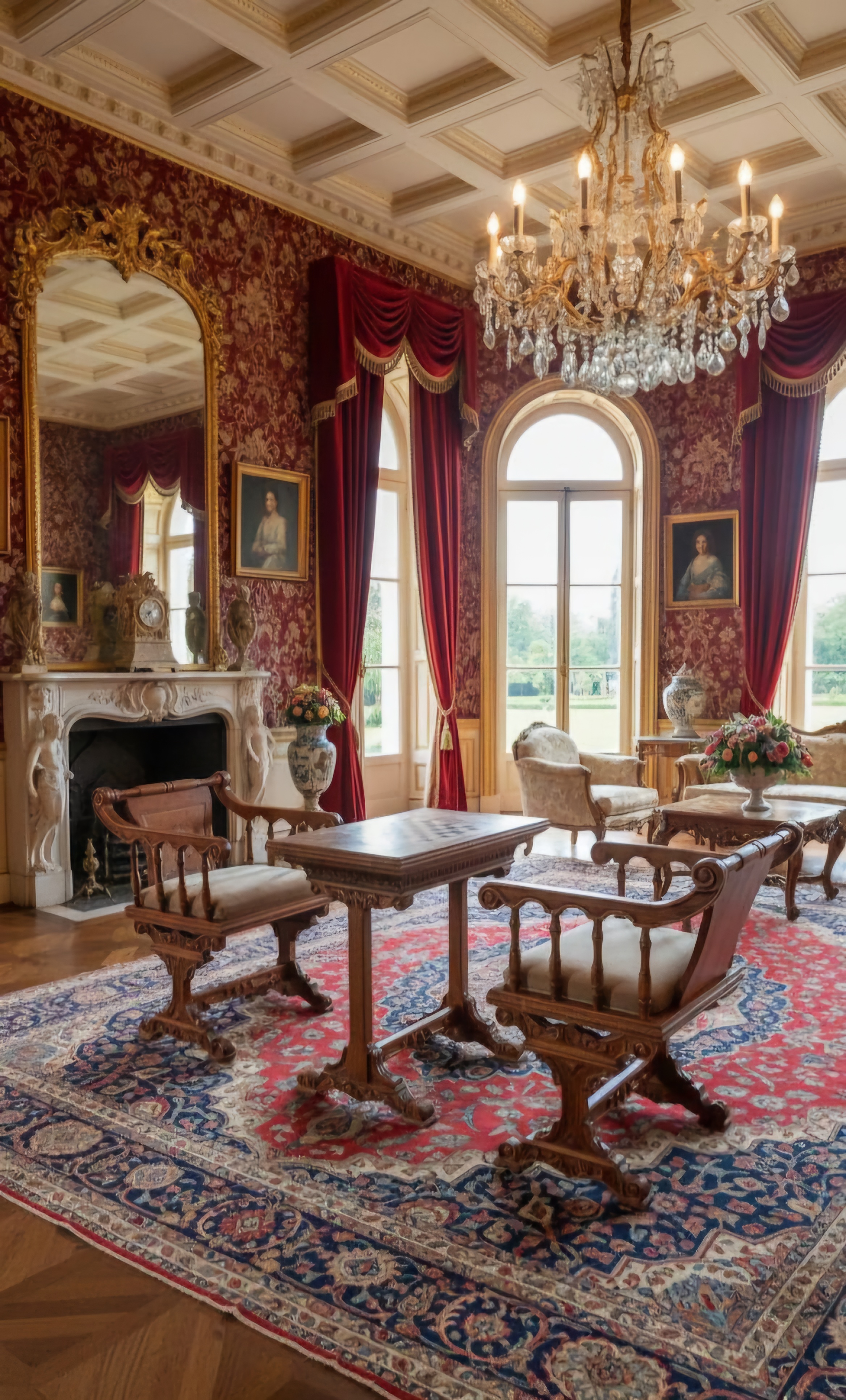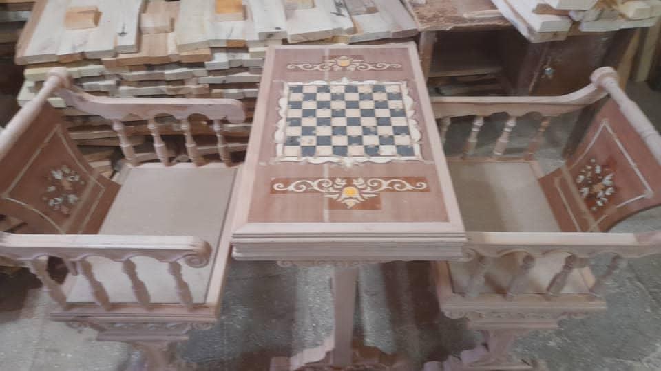 میز و صندلی چوبی منبت‌کاری‌شده دو منظوره | شطرنج و تخته نرد | چوب راش